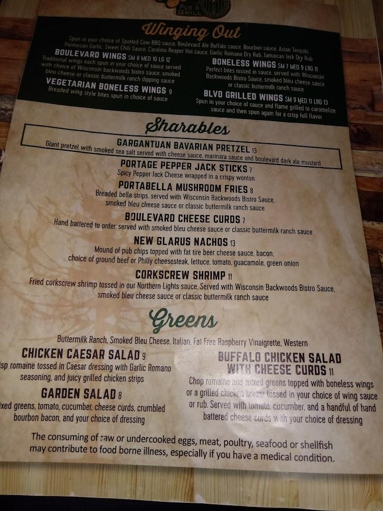 The menu at Boulevard Pub and Grill serves classic pub fare with a regional twist. Specialties include cheese curds, wings, and a variety of mouthwatering burgers. The gargantuan Bavarian pretzel is a must-try—perfectly baked and served with cheese dips and mustard. For those exploring lighter options, the vegetarian boneless wings don’t disappoint.